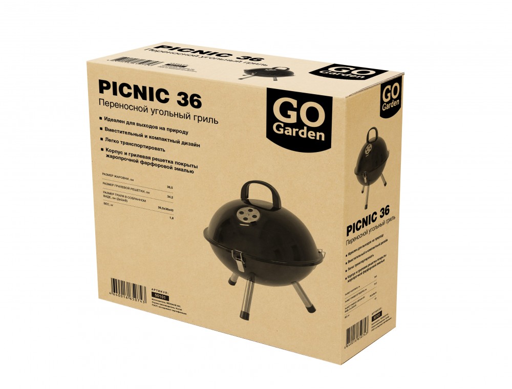 Самый компактный и легкий переносной угольный гриль-барбекю GoGarden "Picnic 36"! Он максимально удобен для выходов на природу, походов, пикников и рыбалки. Использование переносного гриля-барбекю гораздо безопаснее, комфортнее и практичнее, чем приготовление пищи с обычными одноразовыми мангалами. Он прослужит вам долгие годы и подарит массу положительных эмоций.