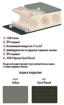 – С лицевой стороны антискользящее покрытие.– Наполнитель — вспененный полиуретан имеет продольные торцевые каналы.– Два клапана.– Увеличенная до 80 см ширина.