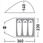 Легкая комфортная палатка. Классическая конструкция с одним входом и одним тамбуром. Проста в установке. Допускается установка без тента. Особенности: Проклеенные швы. Противомоскитная сетка. Прозрачные окна. Технические характеристики:Вес максимальный: 4,94 кг.Габаритные размеры: 360х230х140.Габаритные размеры в упаковке: 68х19х19.Ткань тента: Poly Taffeta 190T PU 3000.Ткань дна: Tarpauling.Ткань палатки: Polyester 190T дышащий.Дуги: Fiberglass 8,5 мм.Артикул: 25363.