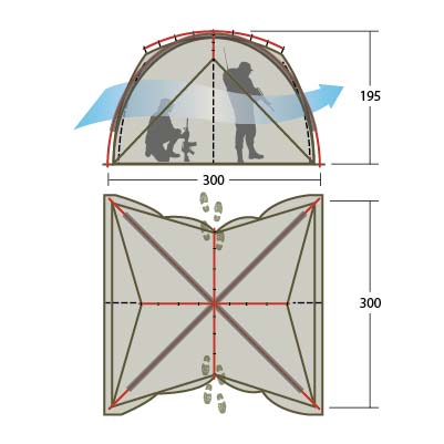 Материал: Тент: Polyester 195T RipStop PU 6000мм. Дно палатки: Polyethylene 4000мм. Дуги: Fib 11мм.