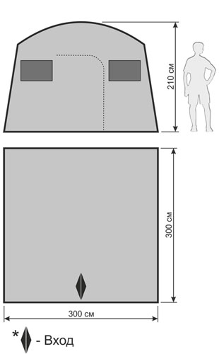 Размеры тента: 300 х 300 х 210 см.Материал стенок: 150D POLYESTER OXFORD PU FR 1,500MM швы проварены.Материал крыши: 150D POLYESTER OXFORD PU FR 1,500MM швы проварены.Материал юбки: 150D POLYESTER OXFORD PU FR 1,500MM.Основные дуги каркаса: DIA. 19MM ALUMIUM POLES плюс FIRST SECTION DIA. 12.7MM FIBERGLASS SOLID.Молния: #5 & 8 NYLON COIL ZIPPER.Шпильки: стальные шпильки, 13 шт.Ветровые растяжки: P.P. STRING DIA. 4мм х 3м, 4 шт.Упаковочная сумка: 150D POLYESTER OXFORD.Вес: 10,8 кг.Цвет: синий.