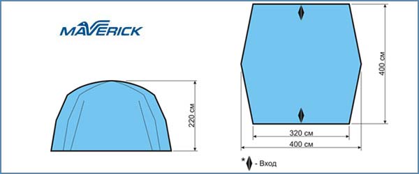 Основное предназначение шатра-тента MAVERICK LEGO – сделать максимально комфортным ваш отдых на природе. Он может использоваться как в хорошую, так и в ненастную погоду. В своей основе шатер представляет собой шестиугольник. Два больших входа, расположенных друг напротив друга, оснащены противомоскитными сетками (сетка «держит» мошку) и дублированы дополнительными стенками, основное предназначение которых защита от дождя и ветра. Шатер имеет четыре больших окна (по два с каждой стороны от входов), которые так же оснащены противомоскитными сетками и дублируются ветрозащитными стенками. Площадь шатра позволяет комфортно разместиться внутри компании из 8-10 человек.