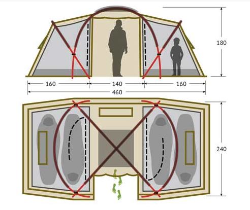 Внутренняя палатка оснащена противомоскитной сеткой, карманами, петлей для фонаря.