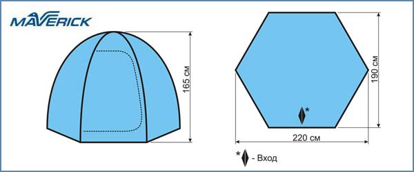 Быстросборная палатка Maverick Ice№2 специально разработана для рыбалки со льда и рассчитана на два рыболова. Конфигурация пола представляет собой квадрат. Так же в комплекте четыре дополнительные ветровые оттяжки. По низу палатки ice 2 пришита шикокая (20 см) юбка. В целом палатка представляет собой устойчивую конструкцию, способную выдержать достаточно сильные ветровые нагрузки. За счет желто/оранжевого цвета материалов, даже в пасмурный день в палатка светло и не требуется использования дополнительного освещения.