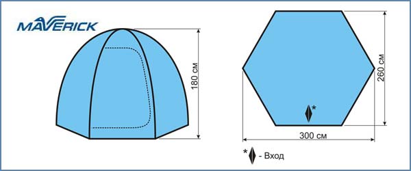 Размер внешнего тента: 260 х 300 х 175см. Размер в собранном виде (упаковочная сумка): 94 х 20 х 20см.