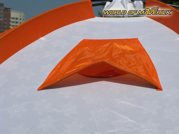 Быстросборная палатка разработана специально для рыбалки со льда и рассчитана на 4-5 рыболовов. Конфигурация пола представляет собой шестигранник. Такая конструкция палатки наиболее ветроустойчивая, при сильных порывах ветра дуги не "скручиваются" и стенки тента практически не "вдуваются" внутрь. Палатка изготовлена из современных материалов. В комплекте идут 6 дополнительных ветровых оттяжек, ввертышей в комплекте нет. По низу палатки пришита широкая юбка (20см), которую, при установке палатки, необходимо присыпать снегом для лучшей ветровой устойчивости и защиты. За счет белого цвета материала купола, даже в пасмурный день в палатке будет светло и не потребуется использовать дополнительное освещение.
