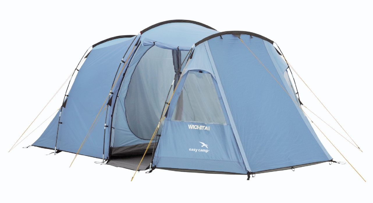 Четырехместная версия модели WICHITA оборудована просторным тамбуром с водонепроницаемым полом и двумя входами. Разделитель на молнии позволяет превратить спальную зону палатки в две отельные секции, каждая из которых будет иметь собственный вход.