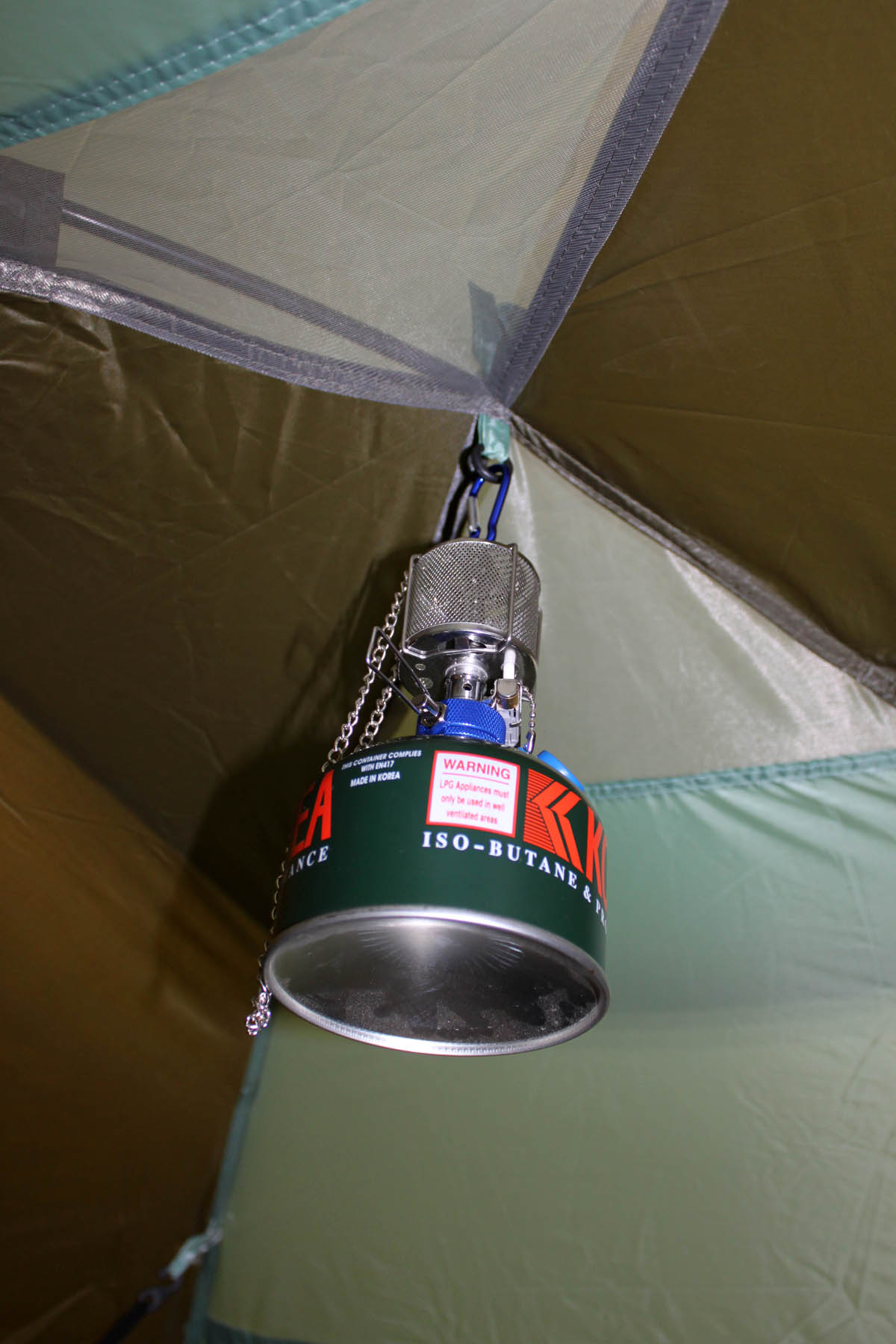 Колечко на куполе внутренней палатки Вы можете использовать для подвески кемпингового фонаря, в особенности удобно подвешивать фонарь с помощью карабина.