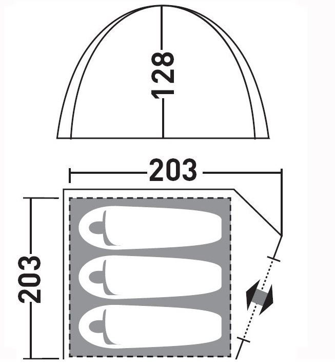 Технические характеристики: Вместимость (человек): 3. Материалы каркаса: Fiberglass 7,9 mm. Конструкция: дуговая. Ткань тента: Poly Taffeta 190T PU 4000. Ткань пола: Tarpauling. Ткань палатки: Polyester 190T дышащий. Проклеенные швы тента. Противомоскитная сетка Карманы. Подвесная полка. Вес макс.: 3,9 кг. Водостойкость тента: 4 000 мм/в.ст.. Габаритные размеры сумки: 60 х 16 х 16 см.