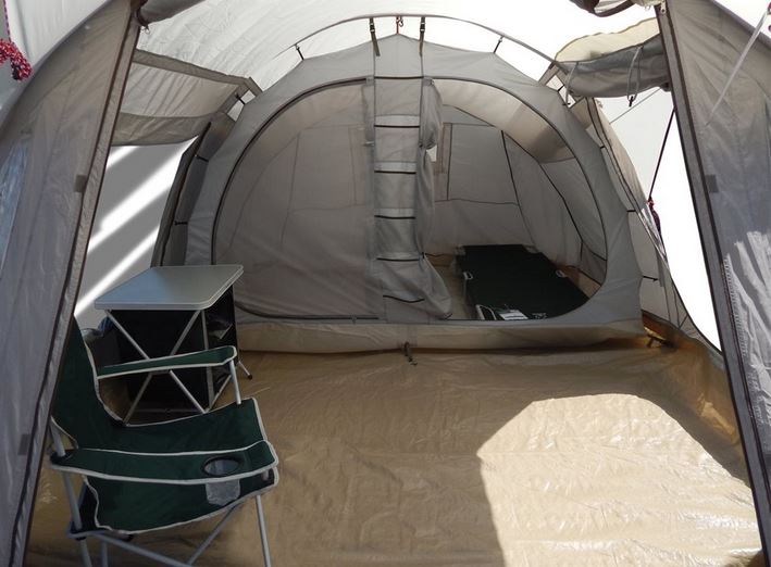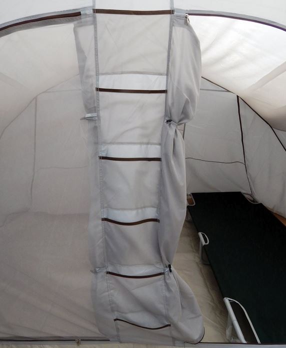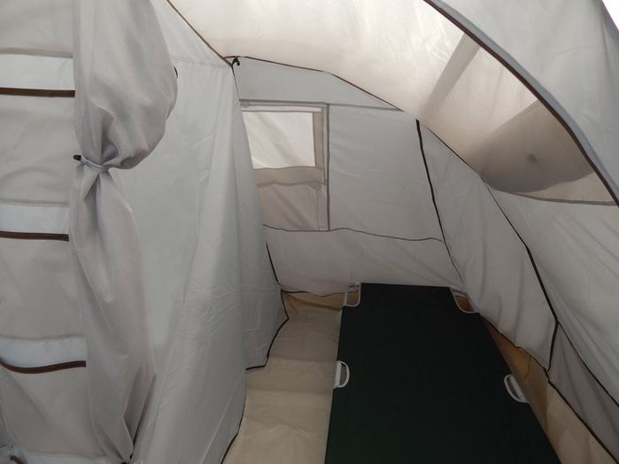 Два входа и два спальных отделения разделенных тканевой перегородкой