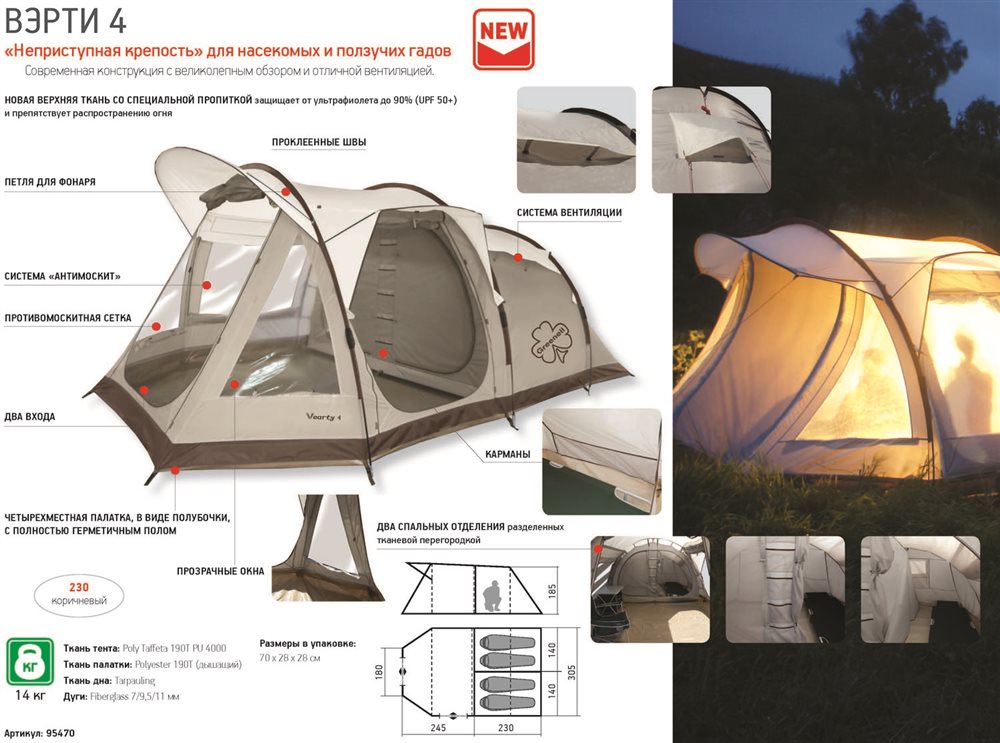 Кемпинговая палатка Greenell Вэрти 4 отличается футуристическим дизайном и продуманной конструкцией, обеспечивающей максимальный комфорт.