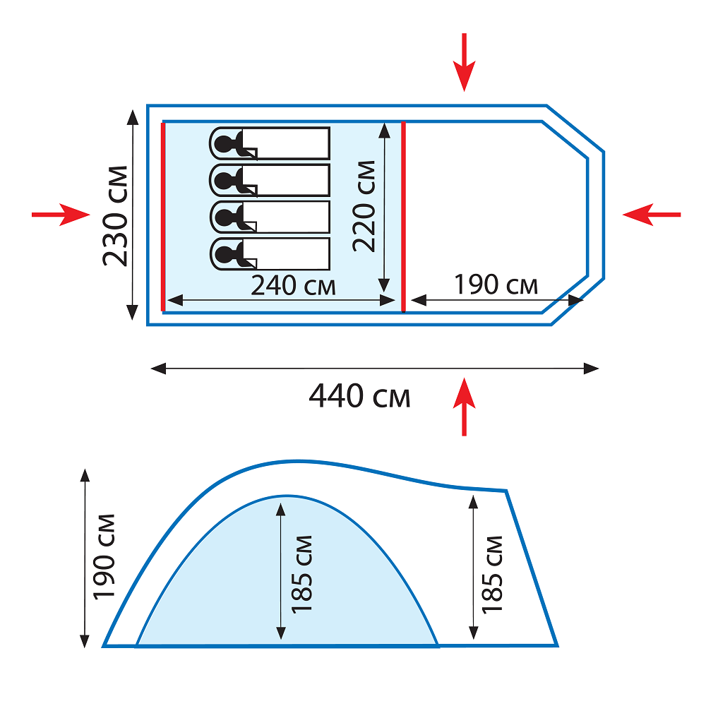 Внешний тент палатки устойчив к ультрафиолетовому излучению.