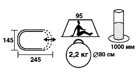 Характеристики: Вес: 2.20 кг Водонепроницаемость: 1000 мм Все размеры: 245*145 Высота: 95 см Каркас: стекловолокно 6.0 мм Материал внутренний: "дышащий" полиэстер Материал пола: армированный полиэтилен Материал внешний: 100% полиэстер, пропитка PU Обработка швов: проклеены Габариты в упаковке: 80*80*6 см
