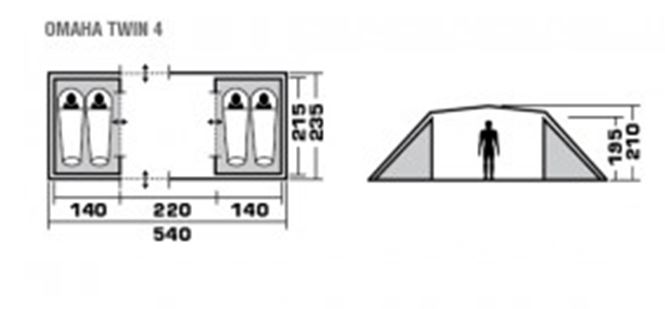 Четырехместная двухслойная современная кемпинговая палатка TREK PLANET "Omaha Twin 4" с двумя раздельными спальными отделениями, отличной вентиляцией, большим и светлым внутренним помещением между спальными отделениями, позволяющим расположиться внутри всей семьей или небольшой компании отдыхающих. Благодаря москитной сетке на одном входе в тамбур в полный размер двери с одной стороны и огромному обзорному окну с другой стороны, достигается отличная вентиляция и отличный обзор из палатки!