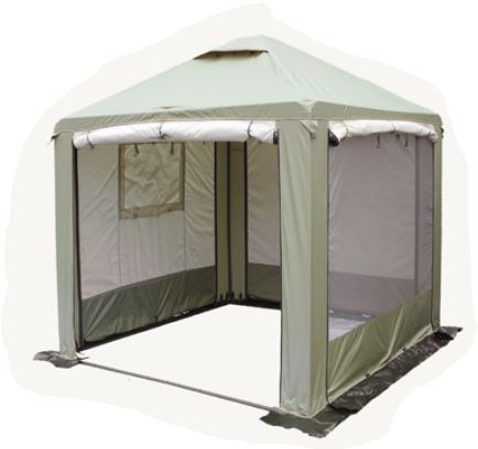Тент пошит из полиэфирной ткани с водоотталкивающей пропиткой, устойчивой к воздействию солнечных лучей.Швы крыши проклеены.Широкая замкнутая юбка полностью исключает поддув холодного воздуха снаружи, затекания воды, проникновение змей, грызунов и пр..В верхней части крыши встроен вентиляционный закрывающийся изнутри клапан, снабженный антимоскитной сеткой от насекомых и защитным козырьком от осадков.В двух противоположных боковых стенах имеются окна из прозрачной пленки, закрывающиеся шторками на молниях.Тент крепится к каркасу при помощи стропы с пряжкой и липучек. Это позволяет осуществить хорошую натяжку тента, что очень важно при ветре и дожде.Все стенки сверху пришиты к тенту и крепятся к ножкам при помощи застежек-молний. При необходимости все стенки могут подниматься.Тент имеет 8 прочных петель-оттяжек для повышения ветроустойчивости.Каркас беседки изготовлен из стальной трубы Ø 25 и 28 мм, имеет нижнее основание и покрыт порошковой краской. Нижнее основание и верхняя обвязка служат для повышения прочности конструкции. Для фиксации элементов каркаса между собой используются кнопки-защёлки. Соединительные элементы (крестовины) выполнены из стальной трубы увеличенной толщины.В комплект тента входит: