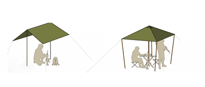 Универсальный тент это незаменимая вещь в любом походе. Тент укроет от дождя и за считанные минуты сделает нивидимым вашу стоянку, автомобиль или моторную лодку. Особенности: