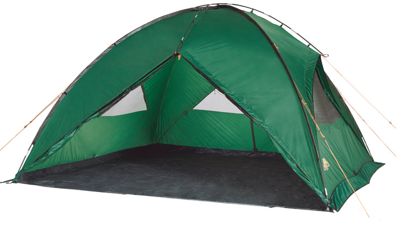 Большой, устойчивый шатер-палатка с высоким потолком для организации столовой или кухни. Хорошо защищает от ветра и дождя. При наличии пола в виде короба палатка может использоваться для ночевки 5 или менее человек.