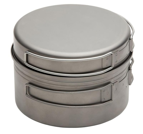 Титановый котелок с крышкой. Разработан для использования в экстремальных видах спорта. Котелок и крышка имеют складывающиеся ручки. Крышка может использоваться отдельно, как миска или сковородка. Упакован в сетчатый мешочек.Сковорода: 144х35мм, 400млКотелок: 148х72.5мм, 1000мл